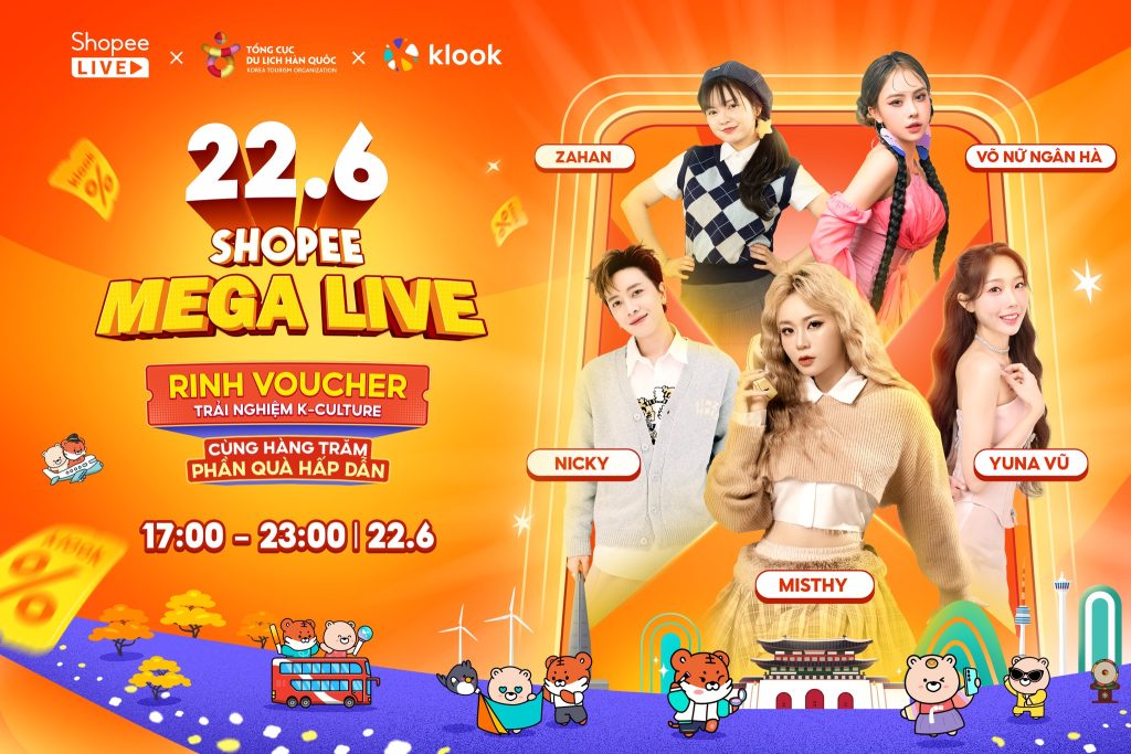 Livestream trên Shopee Live cùng các MC và KOL nổi tiếng như Misthy, Nicky, Zahan, Võ Nữ Ngân Hà, YuNa Vũ…, yêu thích văn hoá – du lịch Hàn Quốc.